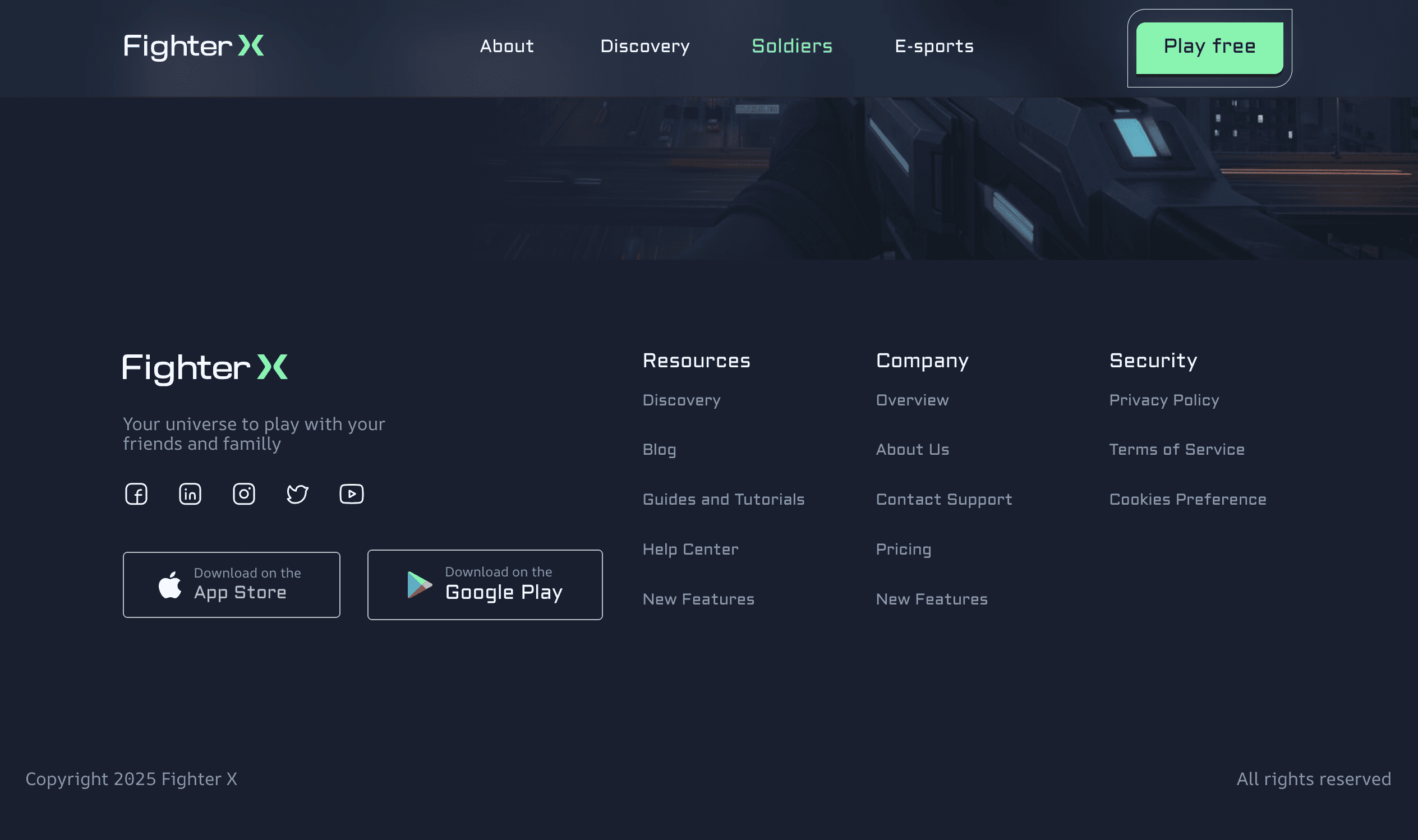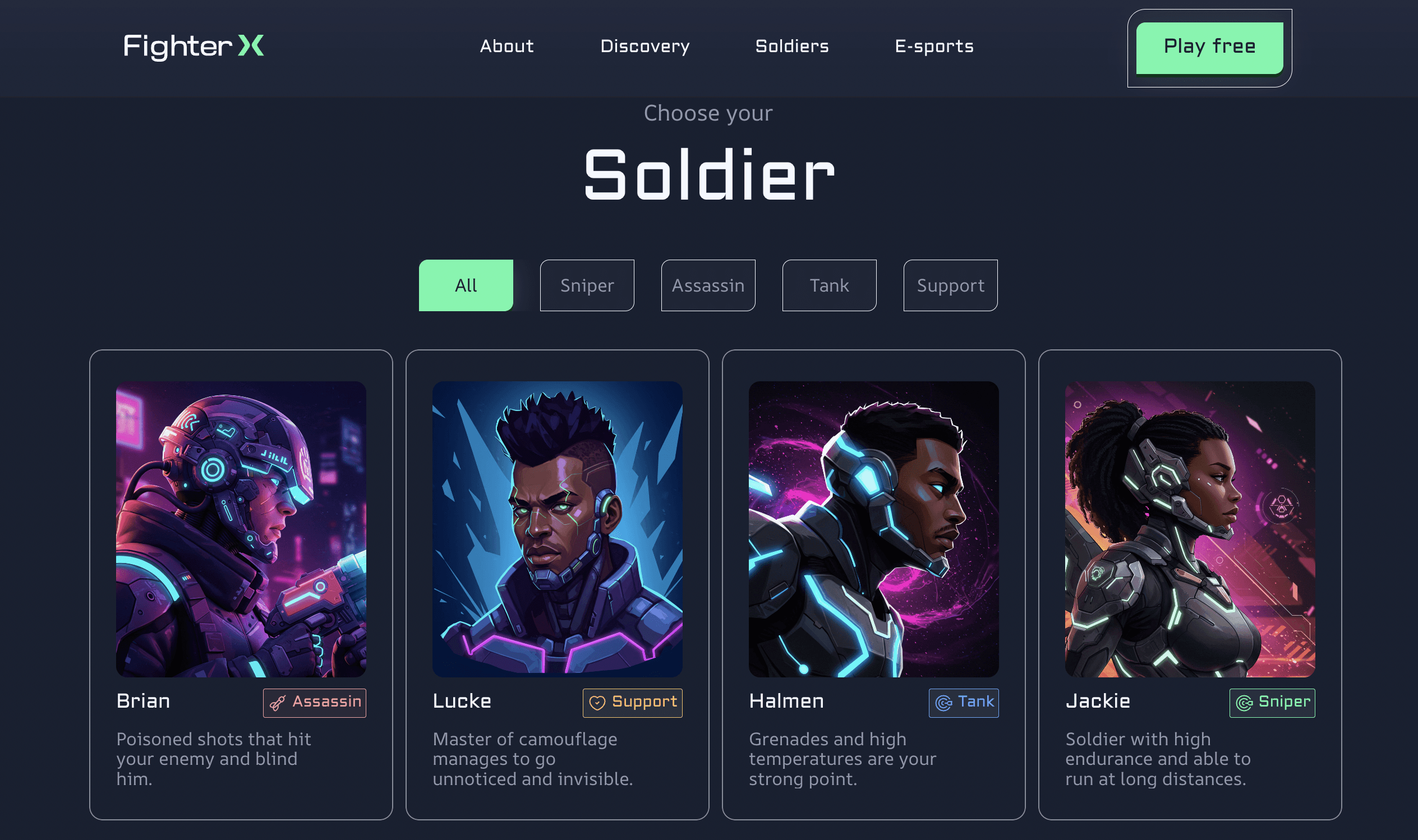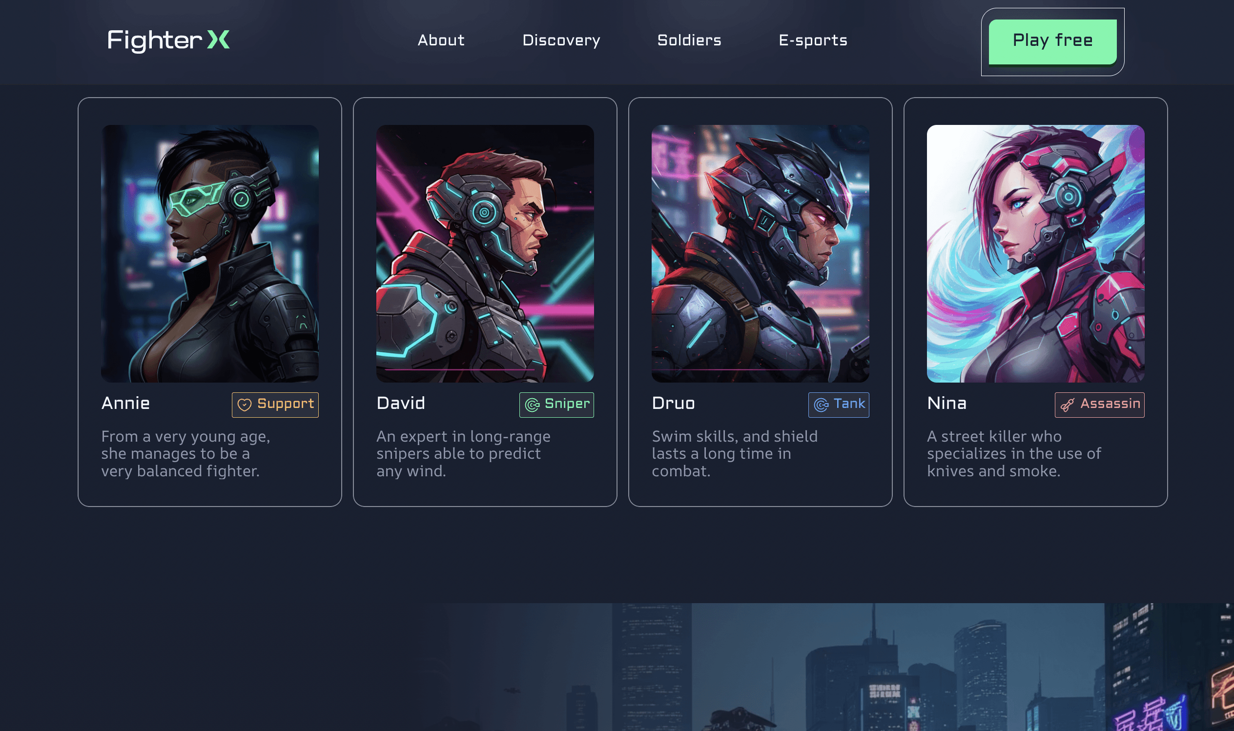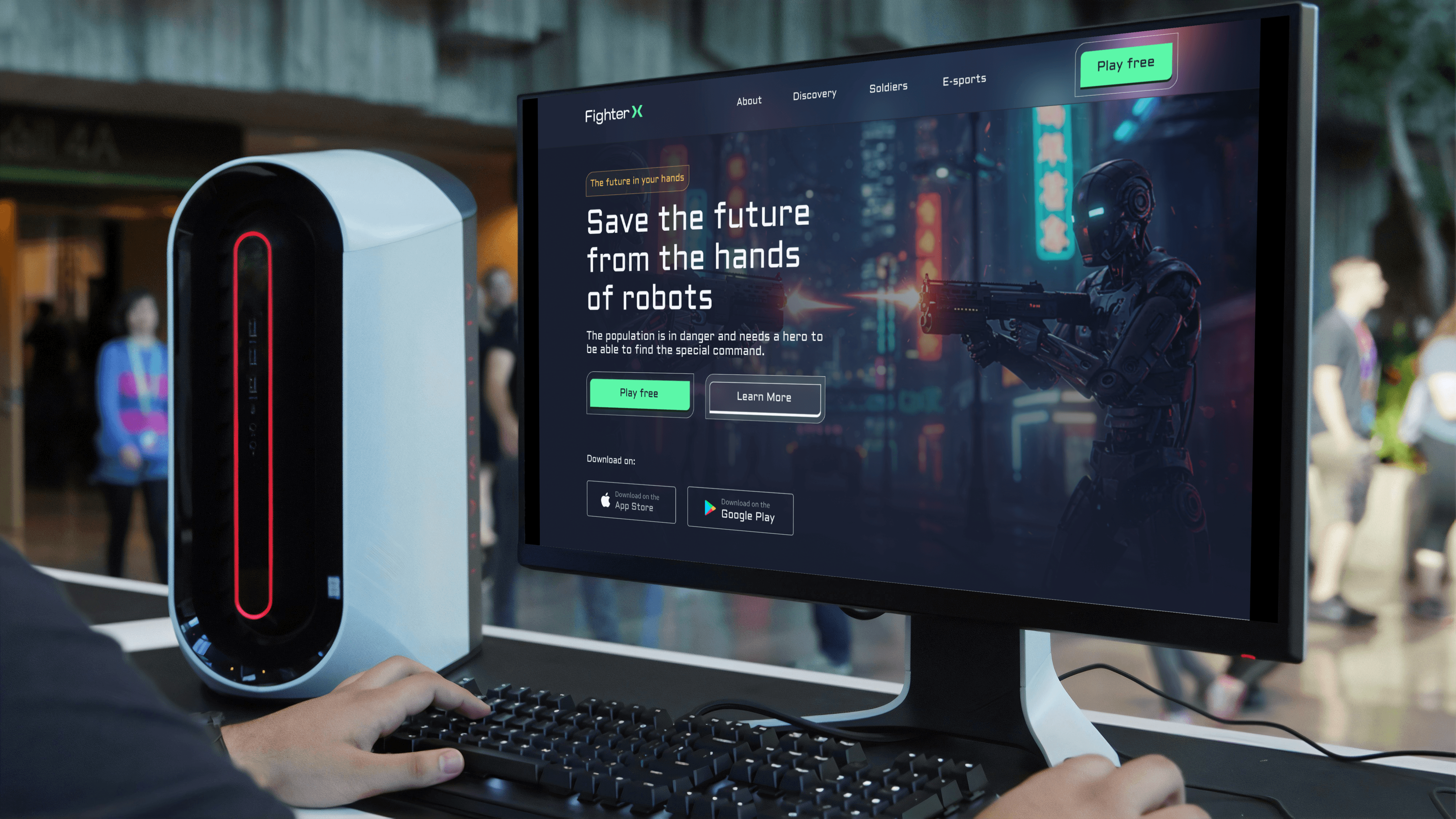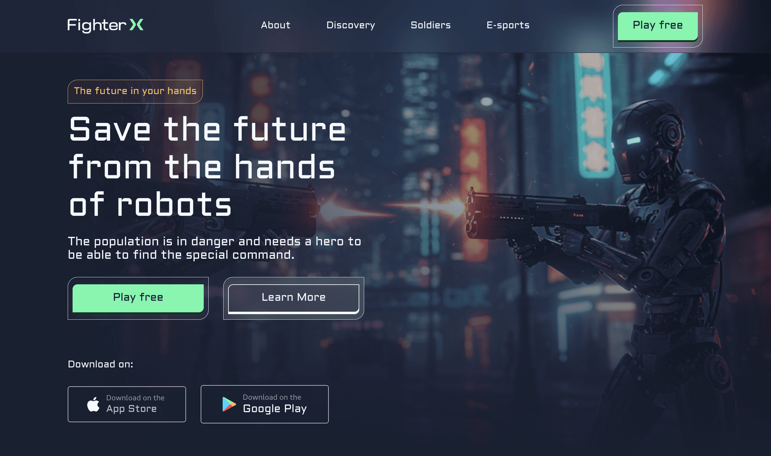 Fighter X is a landing page designed for an immersive online game where players must save the future from a robot uprising. I crafted the entire experience using Figma and Framer, building a responsive interface powered by a custom CMS for easy content updates. The project includes a tailored design system, smooth micro animations, and AI-generated visual assets created using Whisk (Google Lab), delivering a dynamic and futuristic feel that matches the game's theme.