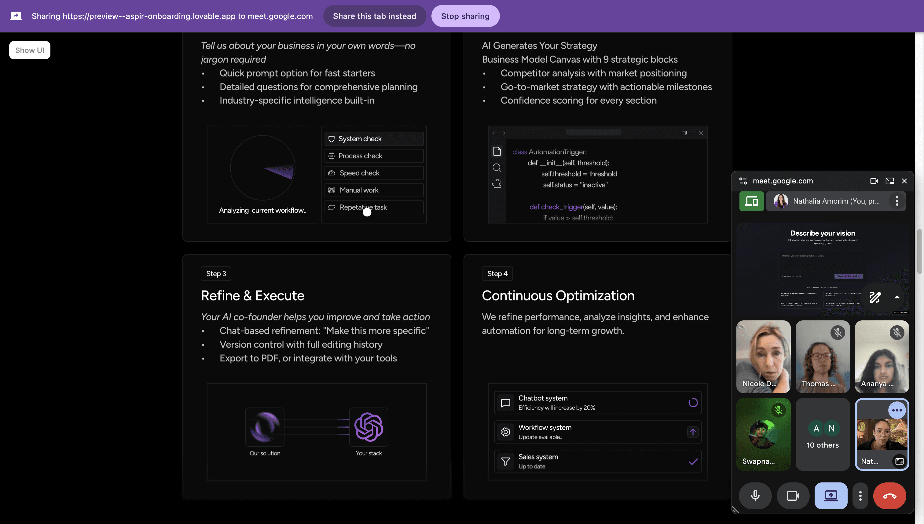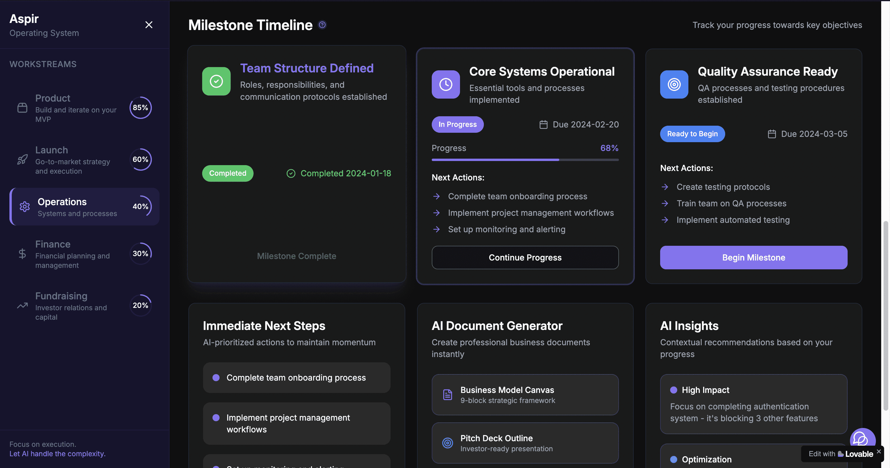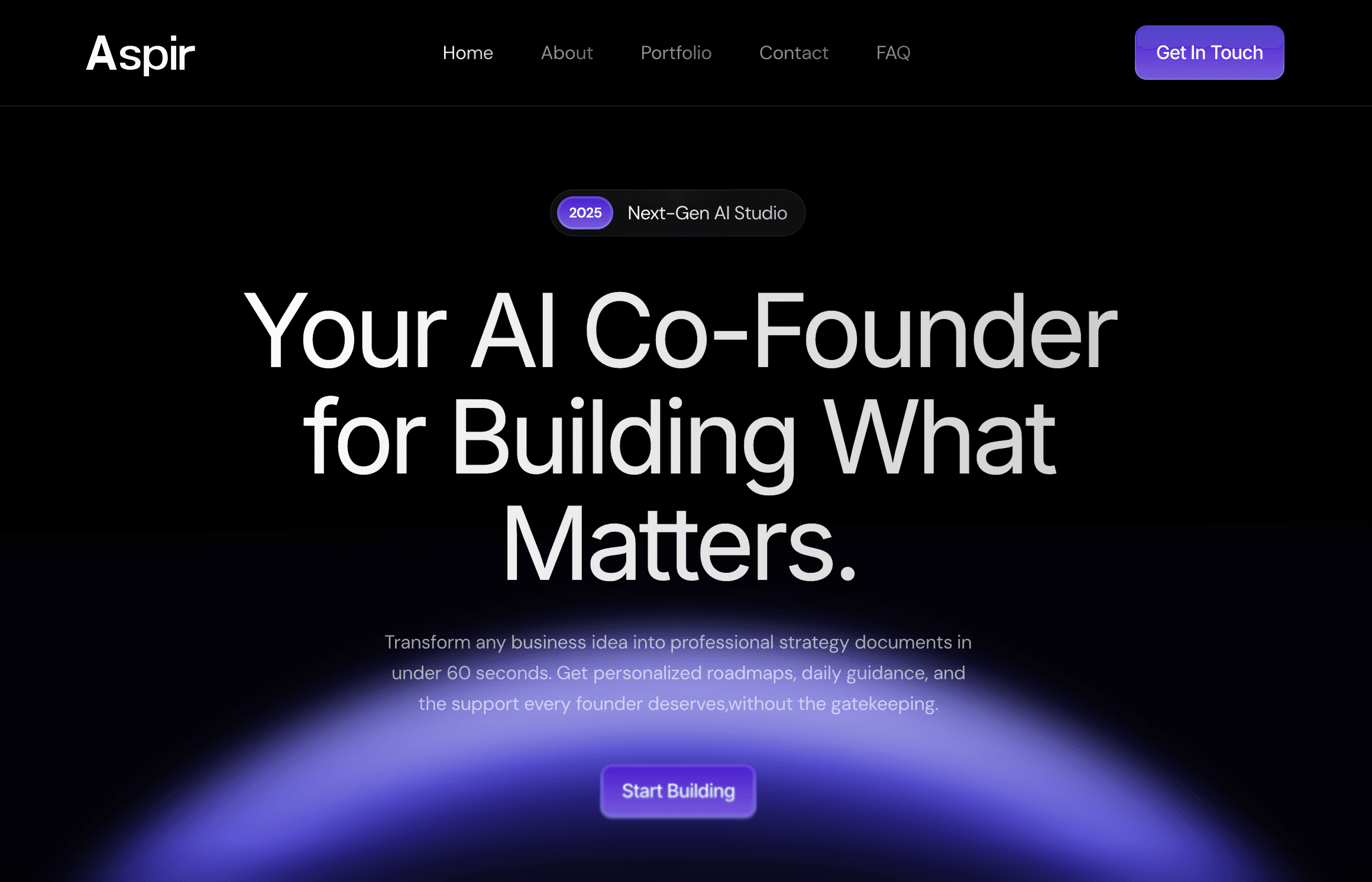 Aspir: An AI-powered operating system that acts as a "co-founder with memory," providing smart recommendations, persistent context, and supportive workflows to democratize startup success.