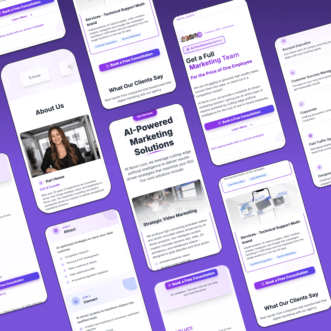 Through a UX-driven transformation process, Novaluce evolved into a full-service AI-driven marketing agency, offering website design, social media, paid traffic, video animation, and CRM integration. Our mission became clear: to provide businesses with the power of a full marketing team.