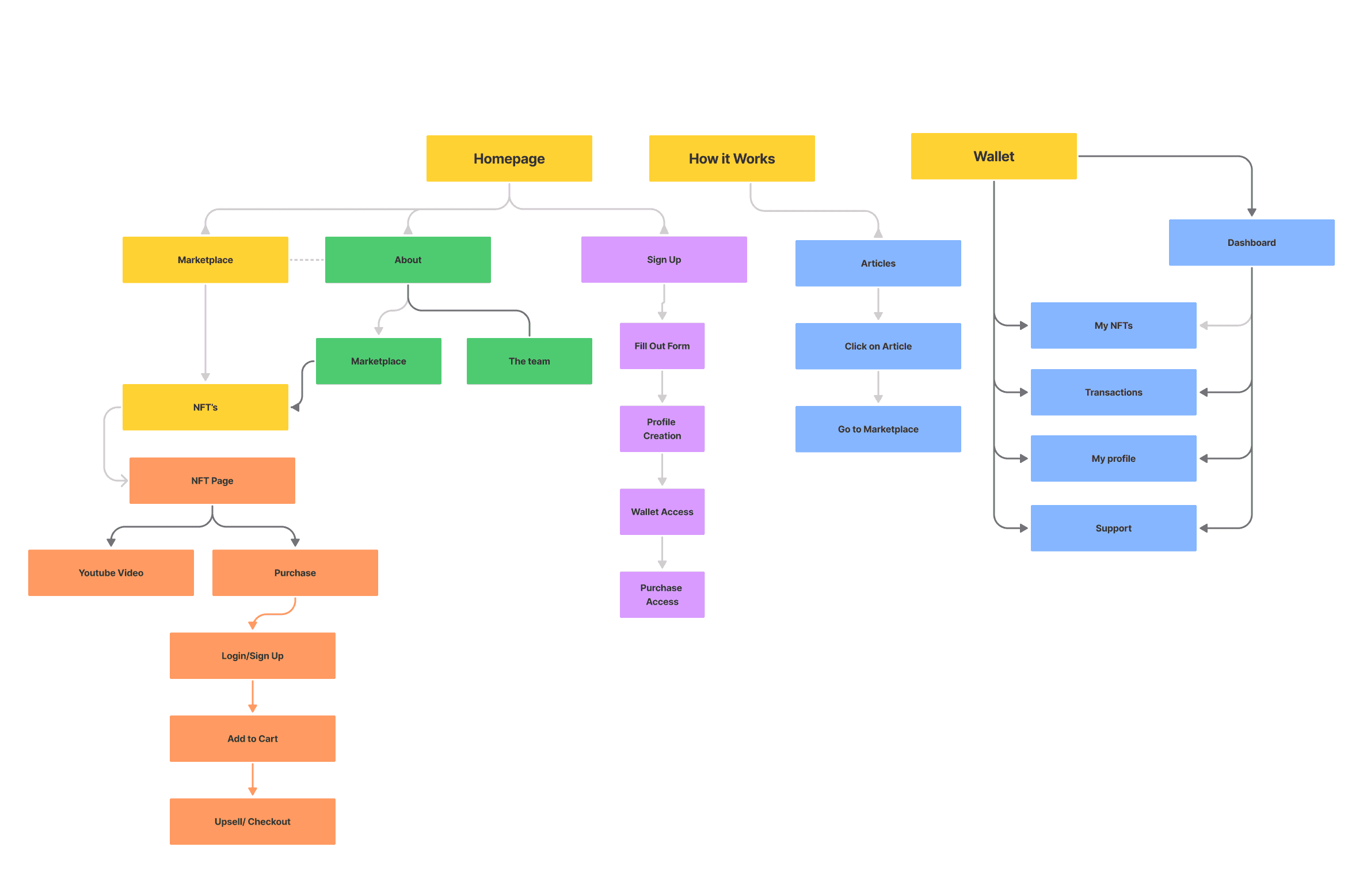 • Created user journey maps and identified friction in the NFT wallet setup + royalty explanation.